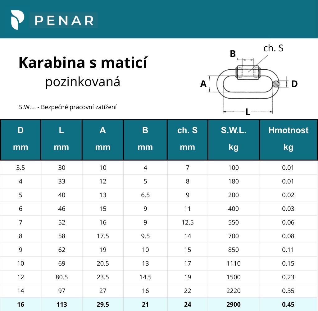 Karabina s maticí není pevnostním prvkem pro tahání nebo zvedání těžkých břemen.