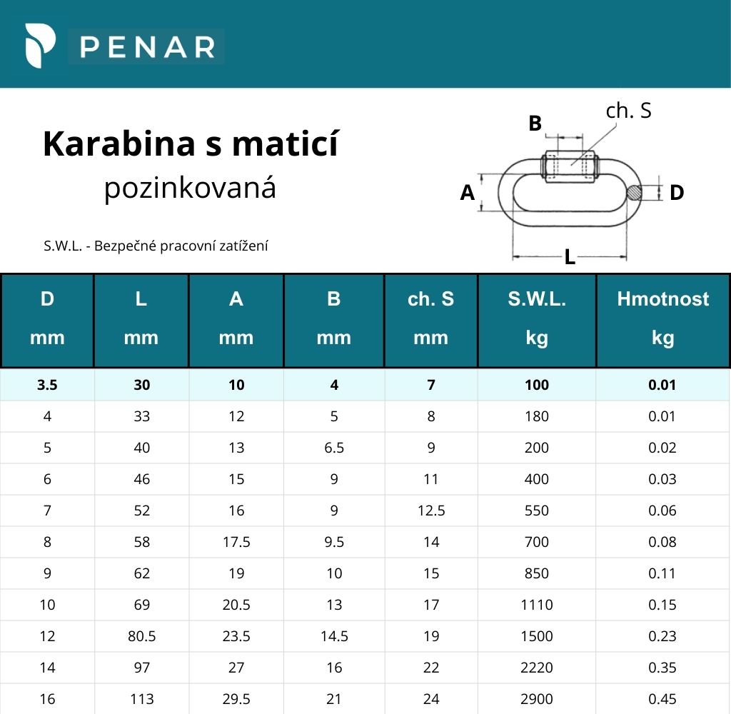 Karabina s maticí není pevnostním prvkem pro tahání nebo zvedání těžkých břemen.