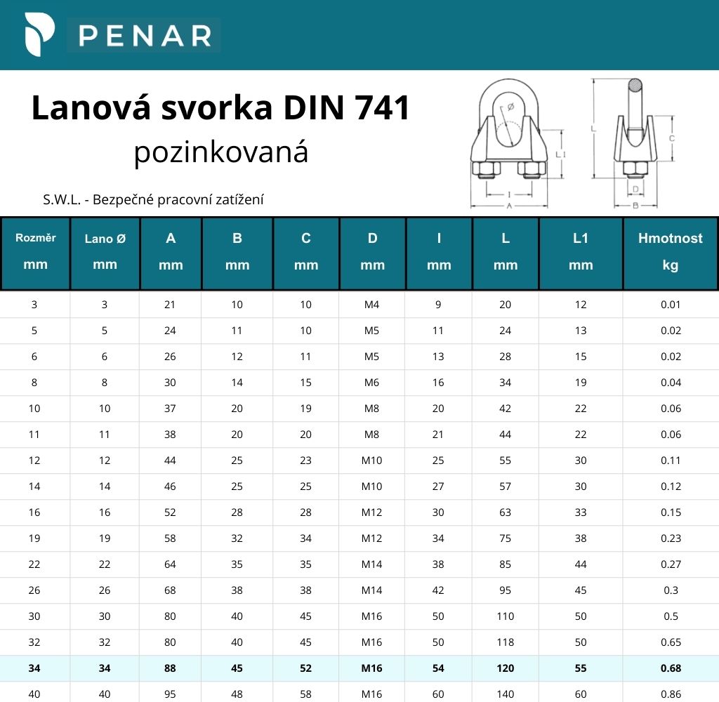 Lanové svorky DIN 741 jsou potřebným příslušenstvím k ocelovým lanům. Pro správné použití je třeba mít lanovou svorku správné velikosti pro průměr použitého lana.