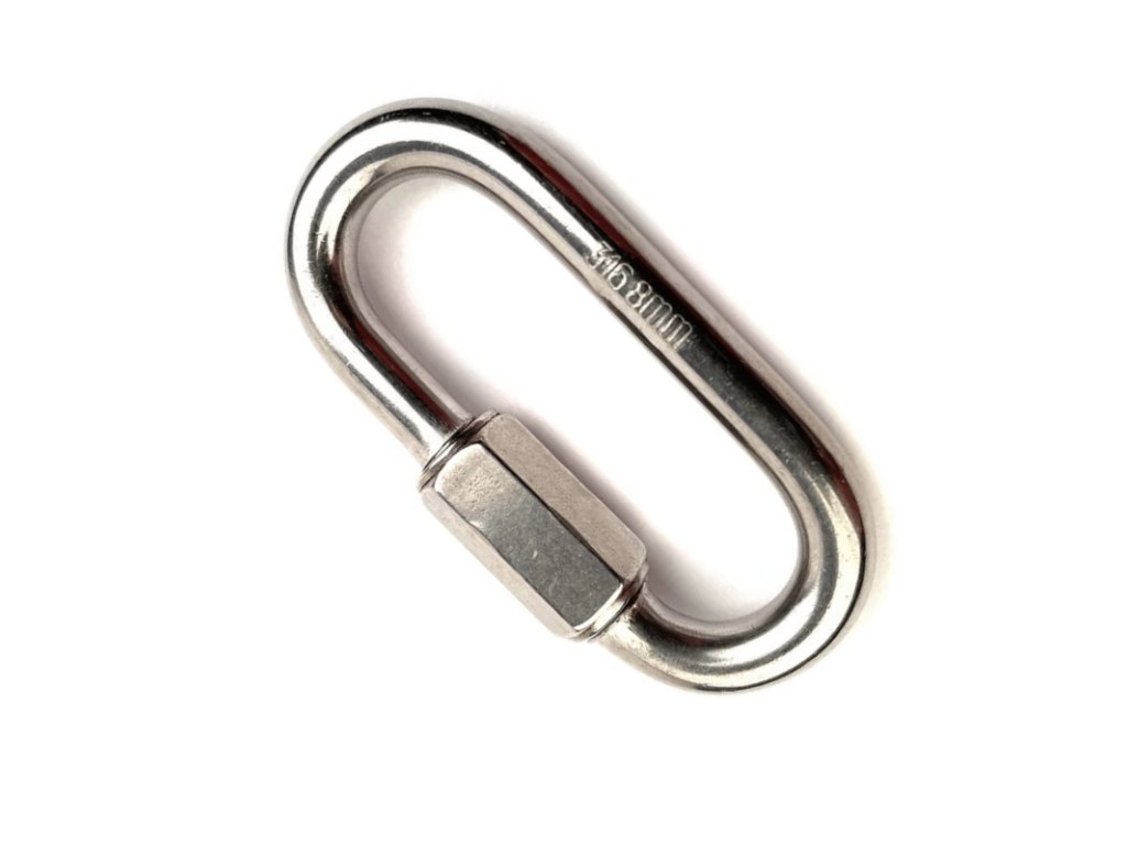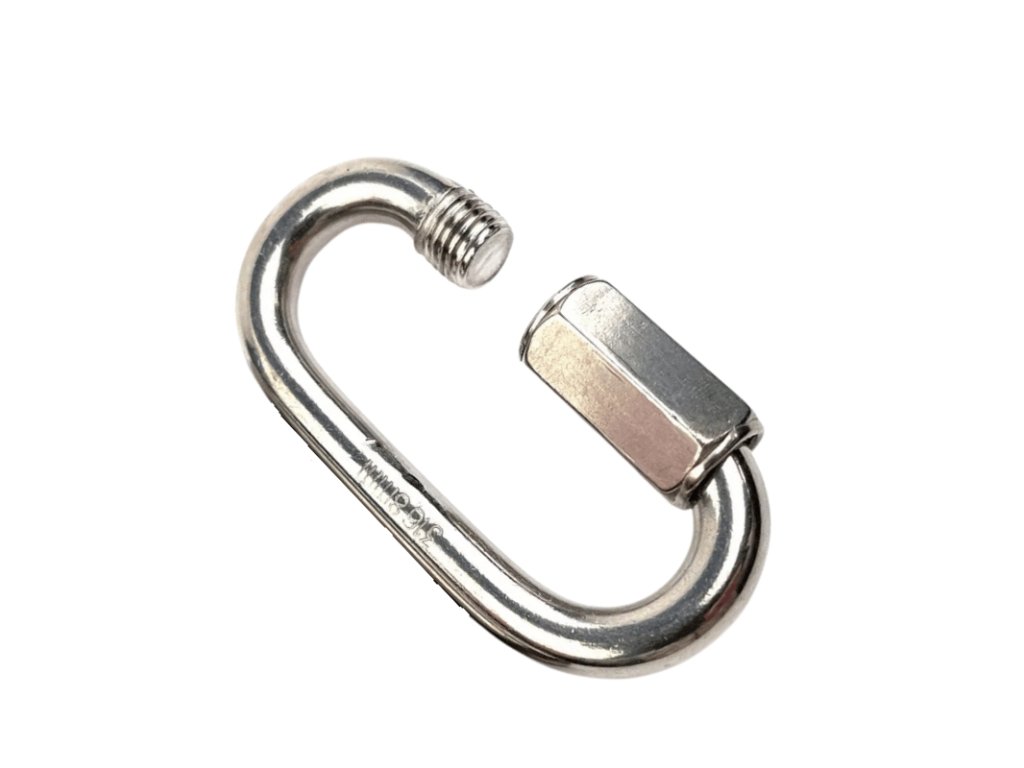 Nerezová karabina s maticí je vyrobena z odolného nerezavějícího materiálu. Vhodná je pro využití v exteriéru. Matice s karabinou je vhodná pro spojování řetězových článků, ale využít ji můžete i pro věšení lehčích břemen. Nerezová karabina s maticí A4 se snadno otevírá i zavírá pomocí zajišťovací matice. Matice se povoluje a utahuje otočením. Karabina se všestranným využitím se sejde v dílně, v zahradě, v průmyslových odvětvích i při sportu.