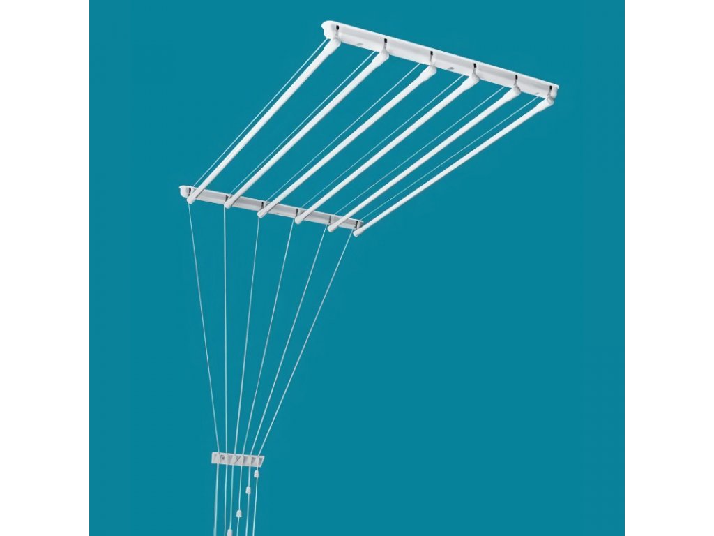 - Jednoduchá elegance stropního sušáku dokonale zapadne do interiéru nebo exteriéru vašeho domova. Zároveň můžete plně využít prostor pod ním a prádlo vám již nebude překážet.