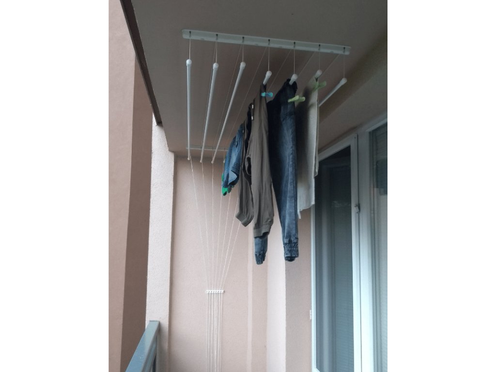 ✅ Montuje se na strop a prostor pod ním zůstává volný. Namontovat jej můžete prakticky kdekoli, kde je pevný strop. Naši zákazníci namontovali stropní sušák na balkon, terasu nebo do koupelny. Mnozí také do garáže, či obytné místnosti.