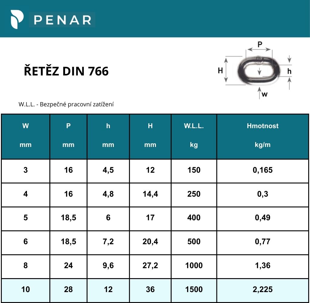 Svařovaný řetěz DIN 766 je tvořen navzájem spojenými krátkými řetězovými články. Tyto řetězy mají široké využití v různých průmyslových odvětvích.