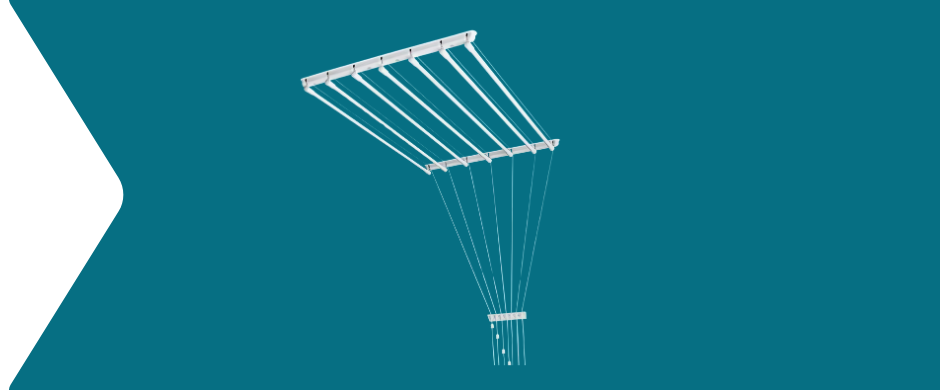 Už více nemusíte sušit prádlo kudy tudy. Složený stropní 7tyčový sušák z naší nabídky vám podá pomocnou ruku, díky které bude sušení opravdovou hračkou.