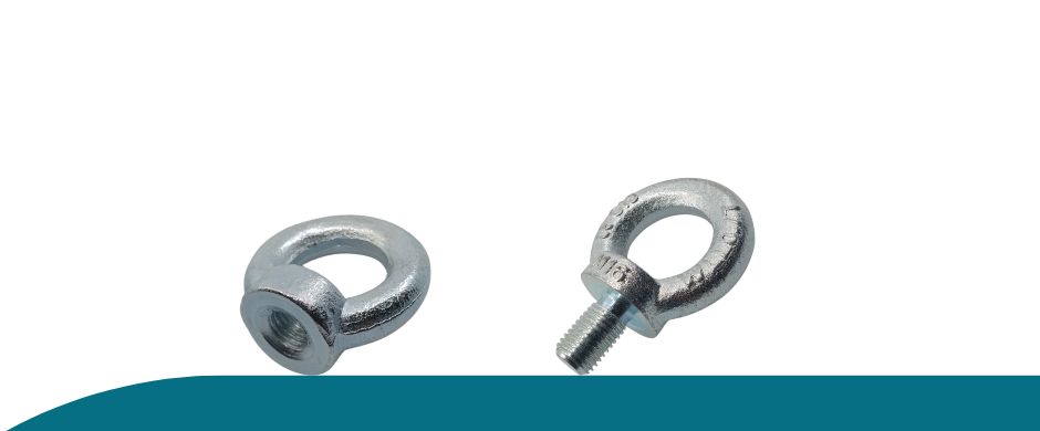Závěsné oko dělíme na dva typy – první je závěsná matice DIN 582 s okem pro zavěšení. Druhý je závěsný šroub DIN 580 s okem. Závěsná oka slouží k uchopení a manipulaci s těžkými břemeny.